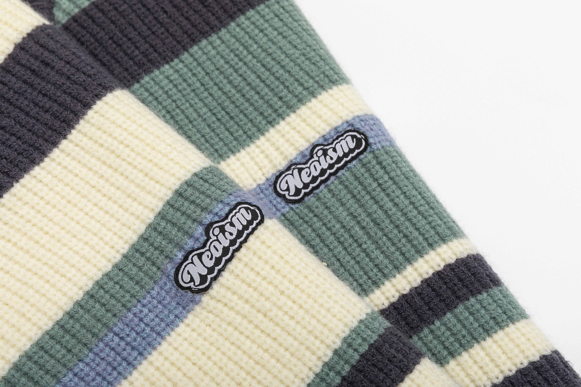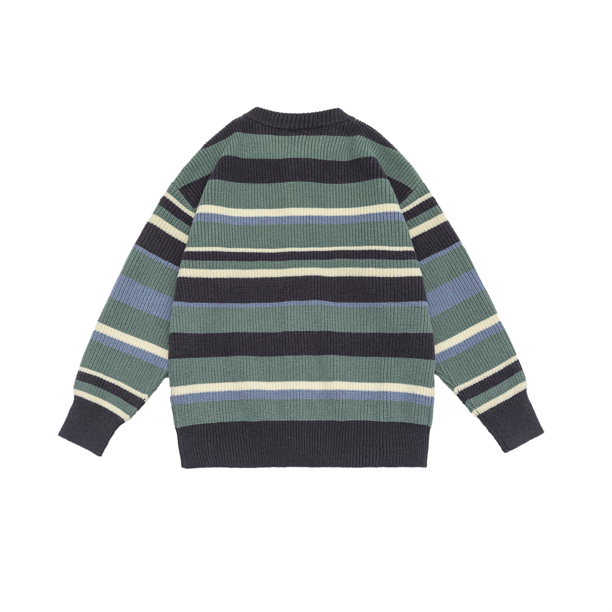 Unisex Color-block Striped Loose Casual Cardigan Sweater Coat