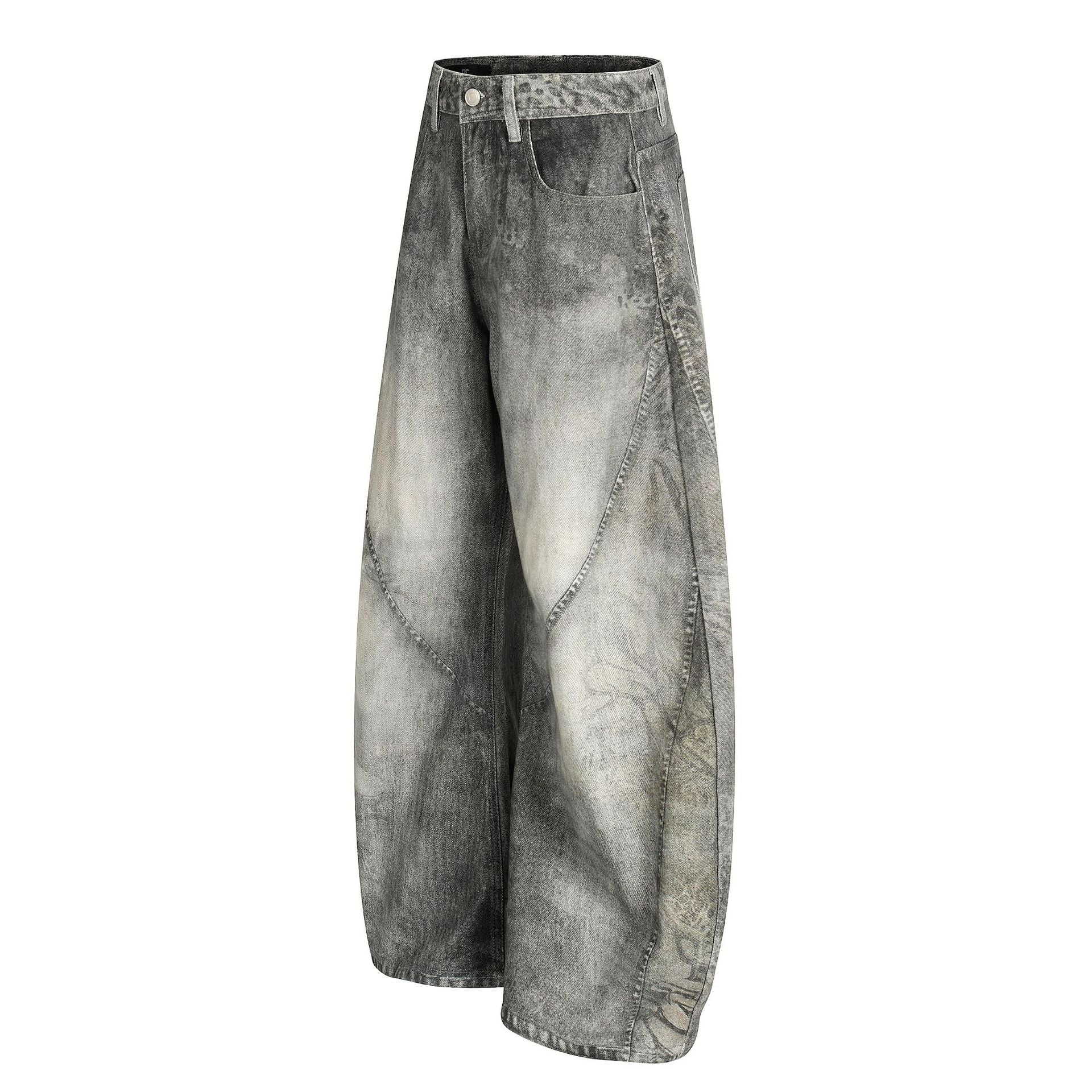 Washed Blue Vintage Distressed High-End Design Men's Loose Knife-Shape Jeans